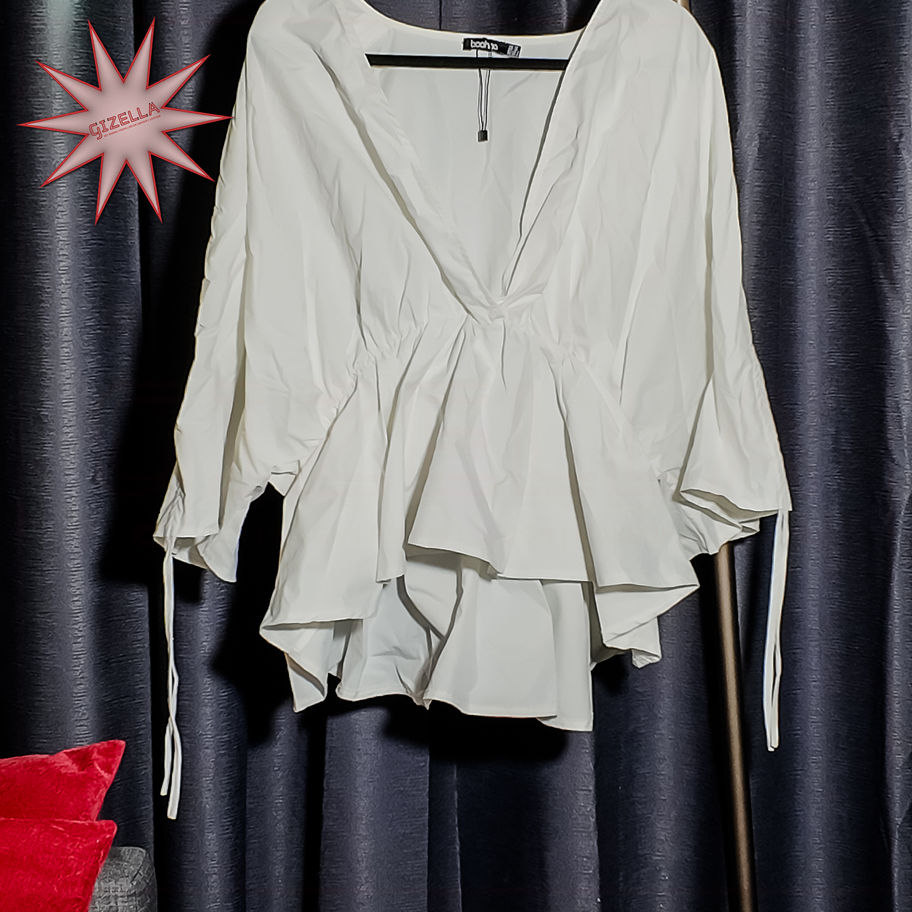 BOOHOO White, V-Neck Ruffles Peplum Top - Size UK 18
