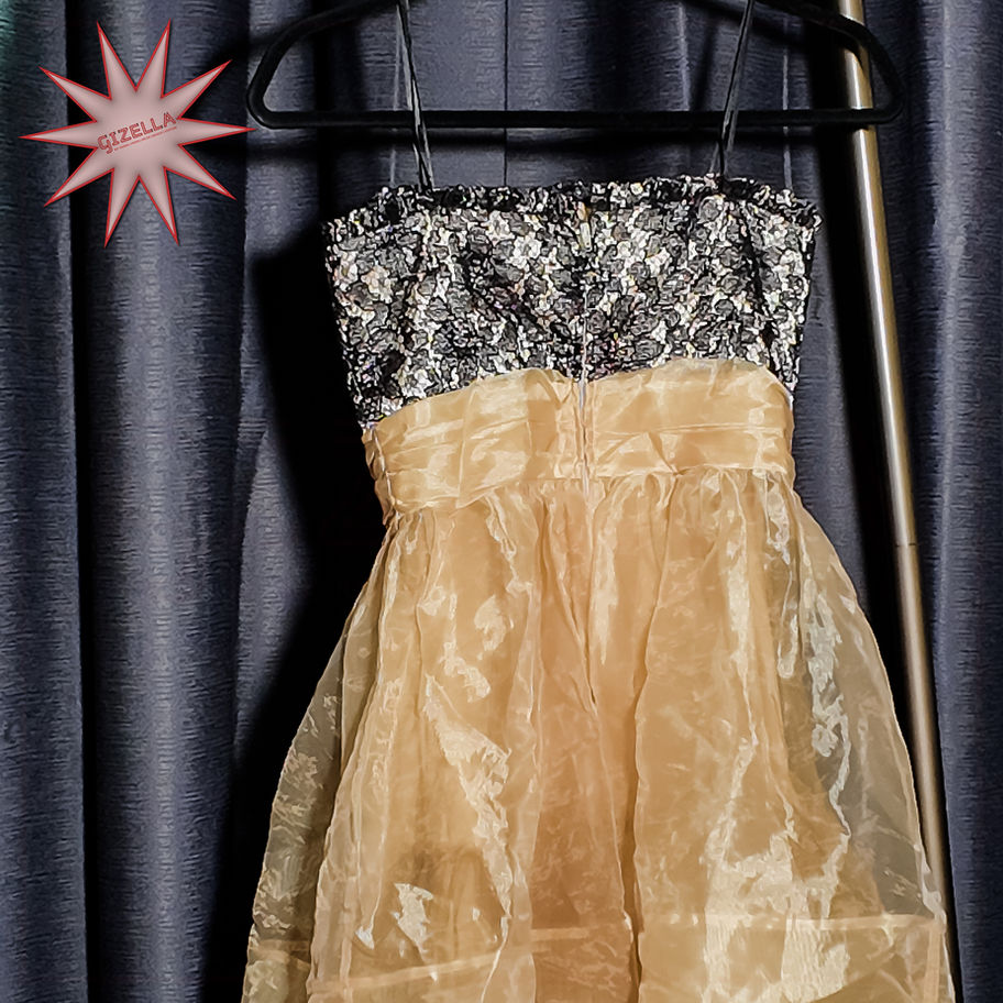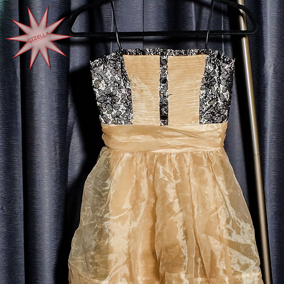 GRACE & HART Gold and Black, Gold Cocktail Dress with Black Lace - Size AU S