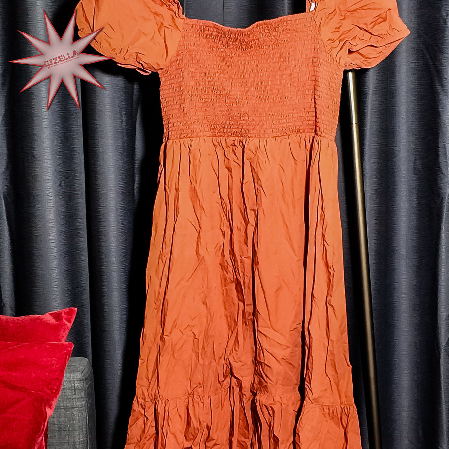 SOMETHING 4 OLIVIA Orange, Ruched Maxi Dress with Puffy Sleeves – Size AU 18