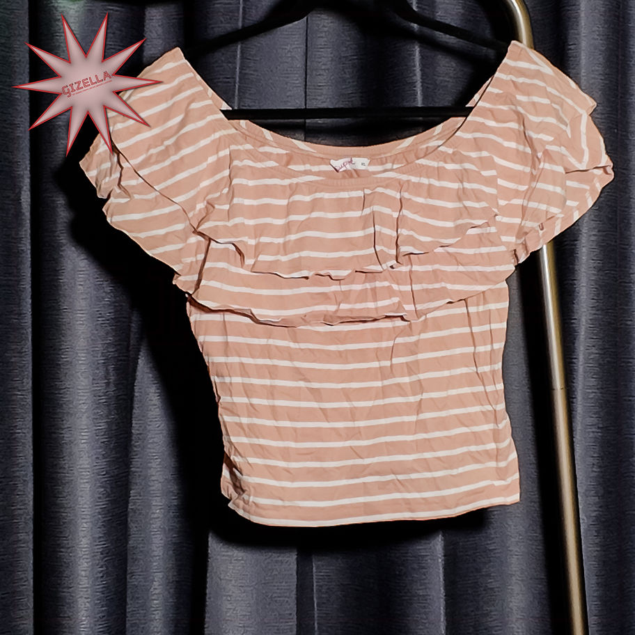 SUPRE Pink and White, Off The Shoulder Ruffle Top – Size AU XL
